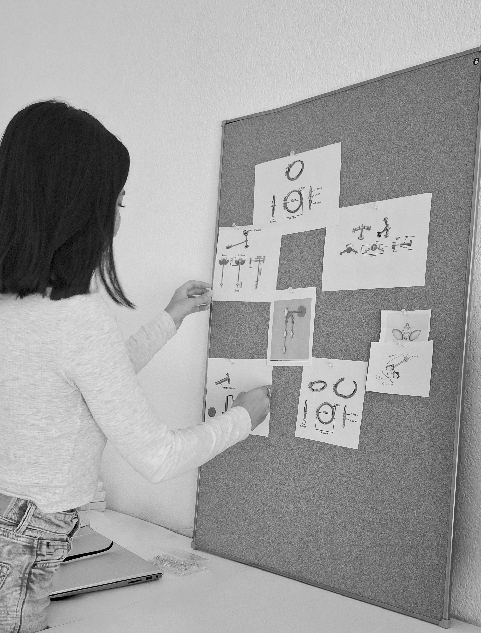 Chaque bijou Éclat d’Orion est une création unique, pensée et supervisée par notre fondatrice. De l’inspiration au produit final, elle accompagne chaque étape avec passion :